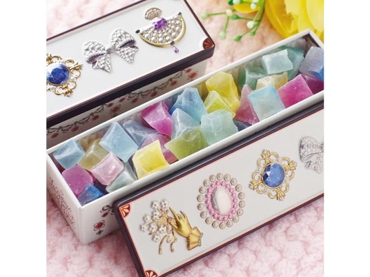 <魔法の琥珀糖>の一番人気フレーバー「プレーン」を美しい宝石缶に閉じ込めました。開ける前から美しい、大変人気のデザイン缶です。中には色とりどりの宝石のような琥珀糖が詰められているので、ギフトにも喜ばれること間違いなし。