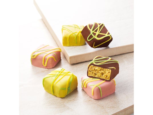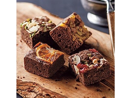 濃厚なチョコレートの生地に、香ばしいナッツや甘酸っぱいフルーツをトッピング。ピスタチオとアーモンド、ごろっとしたパイナップルやネーブル、たっぷりのドライフルーツとナッツなど、おいしさをぎゅっと詰め込んだキューブが、小さな幸せをお届けします。