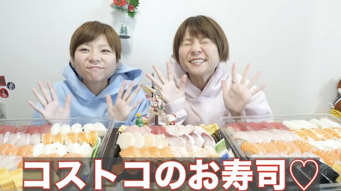 この動画にファンからは「お二人の笑顔が見れて嬉しいし安心しました」「快気祝いのお寿司ですね」「コストコのお寿司は美味しいですもんね」「大好きなお寿司でお祝いですね」などの声が寄せられました。
