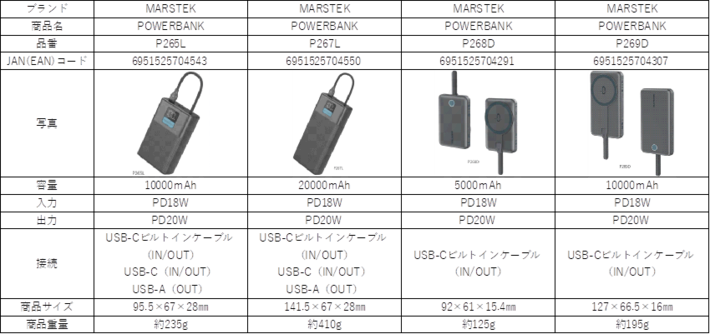 「MARSTEK(マーステック)POWER BANK(パワーバンク)」シリーズ4アイテムを