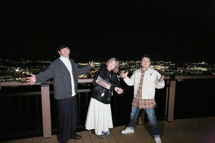 徳島市の夜景をバックに旅を振り返ると、3人のテンションも最高潮に。松嶋さんは、感想を聞かれるなり「住むなら鳴門(なると)!」と即答。「瀬戸内海の穏やかな海を見て、過ごすのはええんちゃう?」と徳島の魅力にハマった様子。
