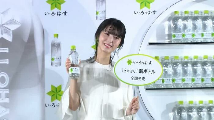 11月29日、「い・ろ・は・す」新ボトル プレス発表会が行われ、CMに出演する浜辺美波さんが登場しました。
