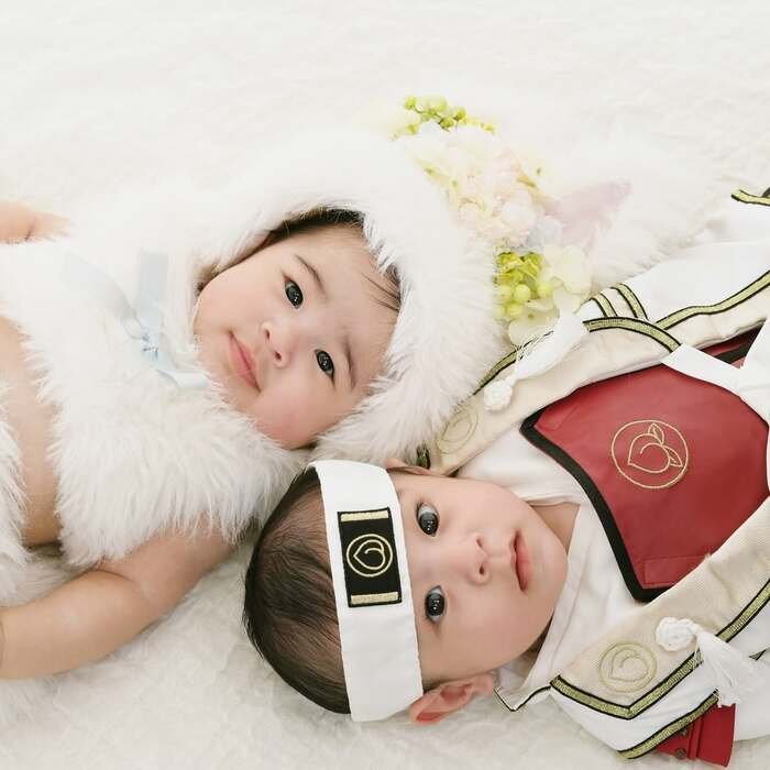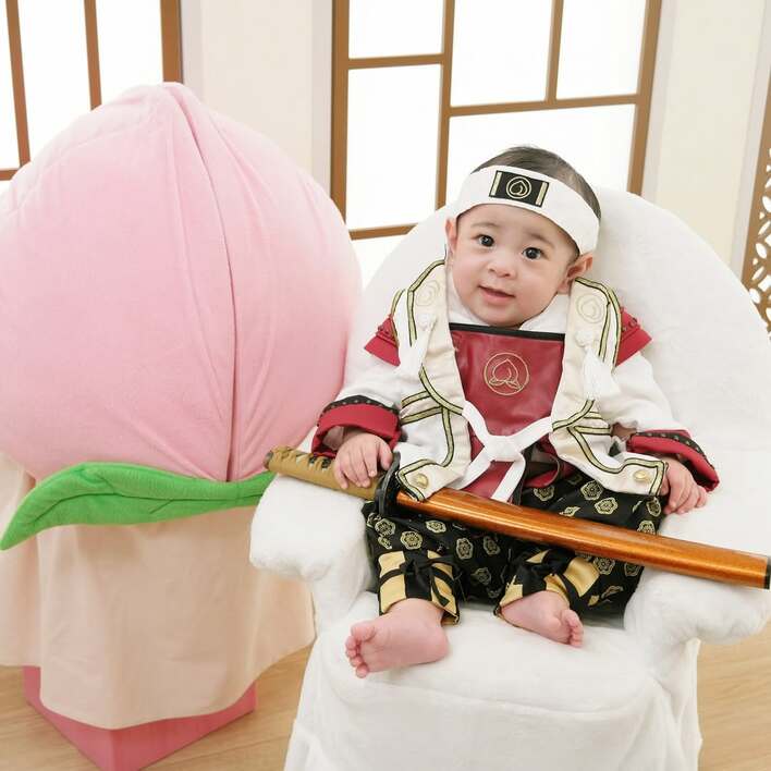 写真には、桃太郎の格好をしてイスに座る兄・“ぴーくん”の姿が。