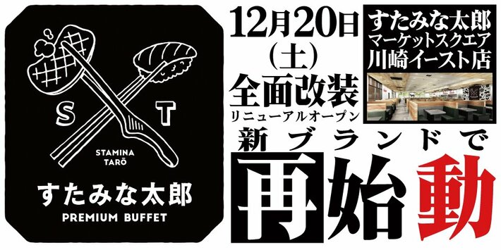 12/20(土)全面リニューアルオープン!すたみな太郎PREMIUM BUFFETマーケットスクエア川崎イースト店