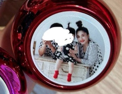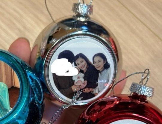 それぞれを見てみると、シルバーのボールには、平野さんと旦那さん、娘の“バブ子”ちゃん、平野さんの母との素敵な家族写真が収められています。