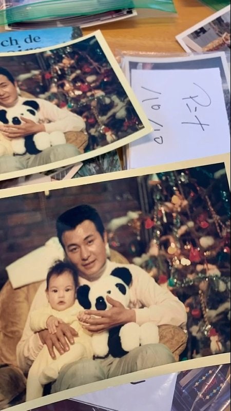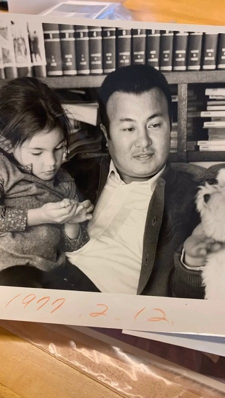 写真には、辰夫さんの膝の上にちょこんと座る、赤ちゃんの頃のアンナさんの姿が。笑みを浮かべる辰夫さんは、アンナさんを優しく包み込み、頬を寄せています。