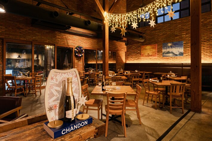 鎌倉駅から徒歩5分、江ノ電が真横を走る特別なロケーションに佇む一軒家レストラン。緑に包まれた開放的なテラス席と落ち着いた店内で、全国の契約農家さんや地元・湘南から届く旬の食材を使った料理をご堪能いただけます。星やギフトボックスをモチーフにデコレーションした煌びやかな空間で、「シャンドン ブリュット」をお楽しみ頂きながら、旬の野菜をふんだんに使った彩り豊かなバーニャカウダや、店内のピザ窯で香ばしく焼き上げるしらすと大葉、バジルジェノベーゼの本格ピザ、鮮魚と根菜のカルパッチョ、トロフィエアラビアータなどホリデーシーズンの趣を添えたメニューをご堪能いただけます。昼は柔らかな陽光につつまれ、夜はイルミネーションの輝きとともに、ホリデーシーズンを彩るAWkitchen GARDEN 鎌倉で、これからピークを迎える年末年始の楽しいギャザリングに、シャンドンと共にきらめきに満ちたひとときを過ごしてみては。