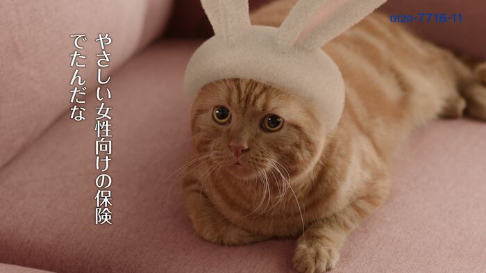猫が兎になるというファンタジックなストーリーを通じて、女性の一生に寄り添う保険の世界観を表現しています。