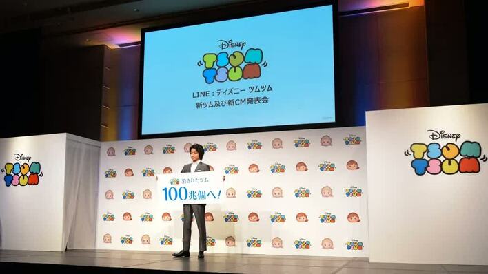 11月27日(水)、『ツム(ぬいぐるみ)』をなぞって消していくスマホゲーム『ディズニーツムツム』の新CM発表会が行われ、CMに出演する藤原竜也が登場した。