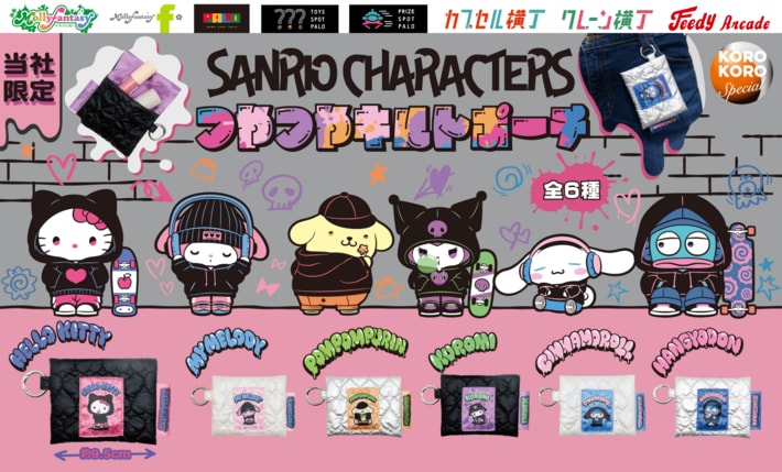 サンリオキャラクターの「ハローキティ」、「マイメロディ」、「ポムポムプリン」、「クロミ」、「シナモロール」、「ハンギョドン」の限定カプセルトイが登場。つやつやのキルト生地で、小物入れにぴったりなサイズの「サンリオキャラクターズ つやつやキルトポーチ」全6種類を展開いたします。