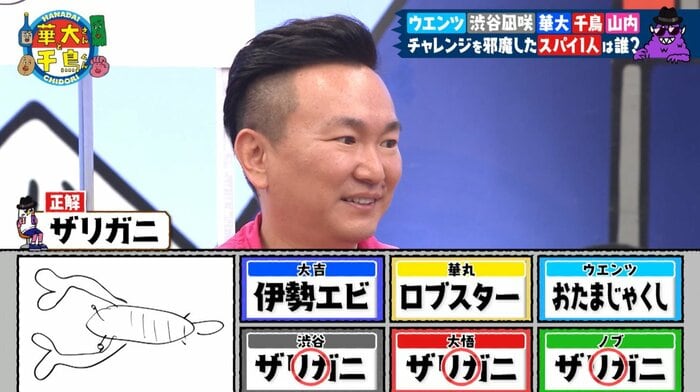 大吉さんは「伊勢エビ」、華丸さんは「ロブスター」、ウエンツさんは「おたまじゃくし」と答えて全員一致ならず(ほかは正解)。