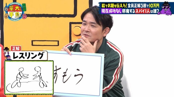 「相撲だったら、ちょんまげやまわしを描いたはず」ということで、あえて外した(!?)可能性があると、ノブさんとウエンツさんに疑いの目が。