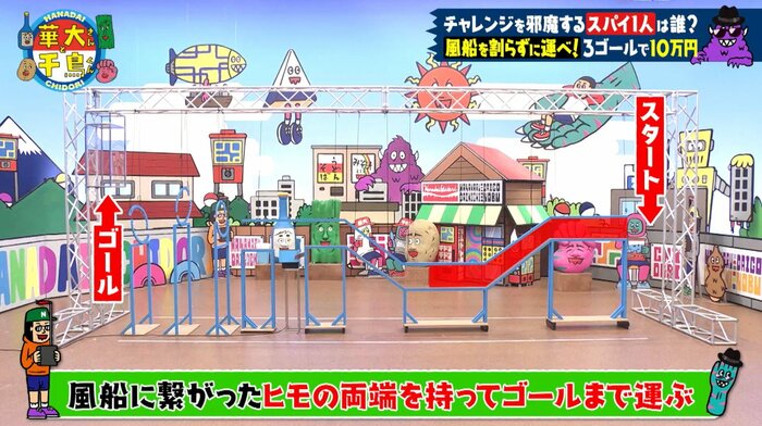 1組目は、ノブさん&山内さん、大悟さん&渋谷さん。2組目は、華丸さん&大吉さん、ウエンツさん&渋谷さんがそれぞれペアになって挑戦しましたが、難易度が高く、両組とも1個も運べずに終了。