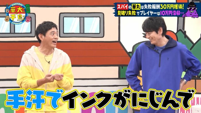 ウエンツさんが目立ちすぎたおかげで、「スパイとしては楽だった」と振り返った華丸さんは「(スパイが)久々やったから緊張して。(最初のチャレンジでは)手汗でインクがにじんだ」と明かし、照れたような表情に。