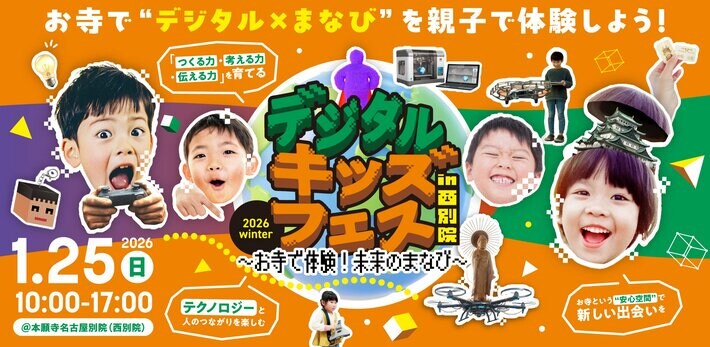 「あなたと社会のテクノロジーパートナー」を掲げるlanitech合同会社(本社:東京都渋谷区、代表取締役CEO兼CTO:西脇 靖紘、以下「lanitech」)は、デジタルキッズクラブ事業にて、子ども向けデジタル教育イベント「デジタルキッズフェス in 西別院 ~お寺で体験!未来のまなび~」を、2026年1月25日(日)、本願寺名古屋別院(西別院)にて開催します。