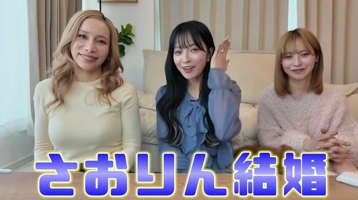 そして動画冒頭に、さおりんさんが「タイトルにもあると思うんですけど、私結婚しました!」と結婚したことを報告!ありしゃんさんとまりなさんも「おめでとうございます!」と祝福します。