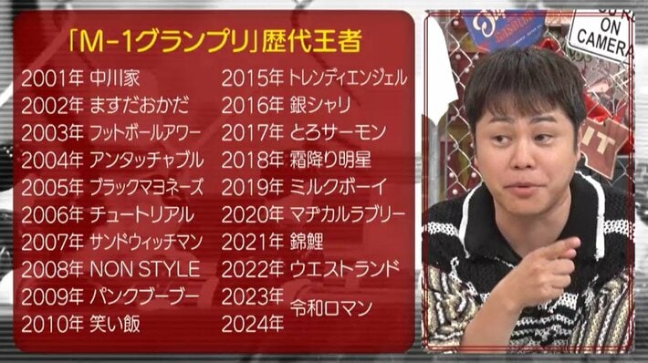 そして、『M-1』の歴代王者はすでに売れていた人はわずかで、他は「ここで優勝しないと芸人をやめなあかん」という人たちばかりだったと解説。