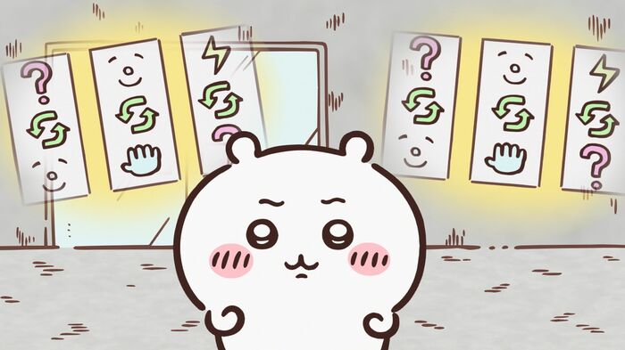 スロットから流れてきたのは「威風堂々」!?ちいかわたちは元に戻れるのか…