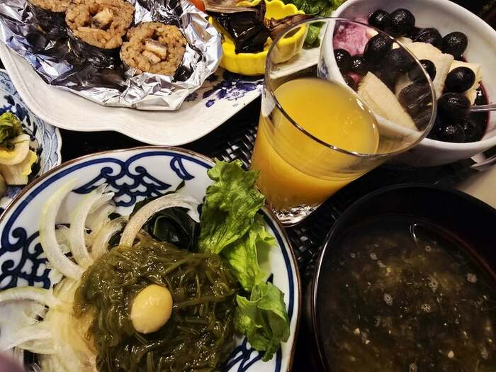 また、わかめやめかぶの入った“かいそう酢の物”や、お味噌汁もラインナップ。健康に気を使っていることがうかがえますね。