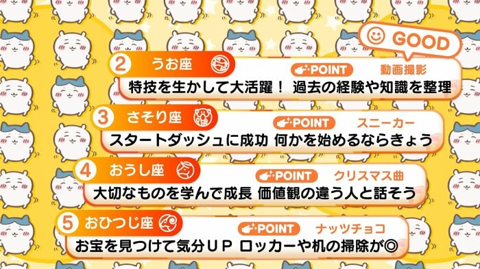 『めざましテレビ』で放送中の「ちいかわ占い」 テレビ放送がない日はお休みで、月~土:朝7時以降に更新予定です。