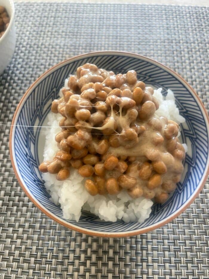 投稿したのはごくごく普通のお茶碗に盛られた2杯のご飯。まずは庶民的な納豆ご飯に…