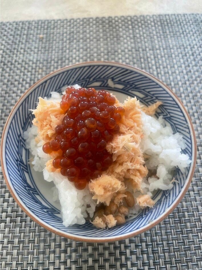 この投稿には「美味しそうなご飯ですね」「イクラがとても美味しそうです」「納豆とシャケとイクラ、美味しそう」などのコメントが寄せられています。