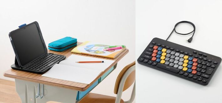 「KEY PALETTO Folio(キーパレット フォリオ)」は、iPadケースとキーボードが一体となった構造です。学習に集中しやすい設計と使いやすさにこだわり、タブレット学習をしっかりサポートします。また、「KEY PALETTO Folio(キーパレット フォリオ)」には、交換用キーボードもご用意しています。「KEY PALETTO(キーパレット)」は、iPadに直接接続できる、USB Type-C(TM)(USB-C(TM))コネクター搭載の有線モデル。L字型コネクターで、iPadからケーブルが飛び出しづらい設計です。