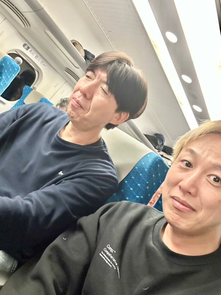お見送り芸人しんいちさんは、「地獄の席やん 今から東京まで2時間『なぞかけ』 寝たいーーー」とつづり、新幹線の中で撮影した1枚の写真を公開。