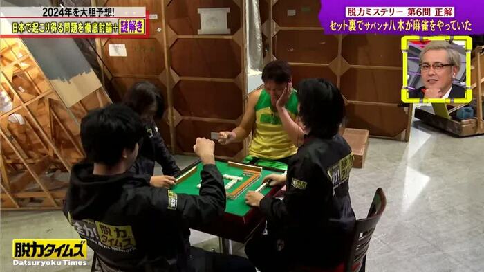 正解:収録中ずっと、セットの裏でサバンナ・八木真澄さんが麻雀をやっていた。
