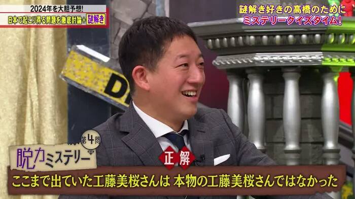冒頭、今回は「2024年を大胆予想!」と題し、日本で起こり得る問題を徹底討論するはずが、ゲストの高橋さんとは「謎解きをする」と打ち合わせしていたことが判明。