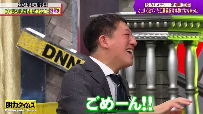 『脱力タイムズ』では、今年からはゲストに対し、虚偽の打ち合わせをしないで収録する方針となっていたため、キャスターアリタの発案で、当初の予定「徹底討論」に「謎解き」も加えて実施することに。