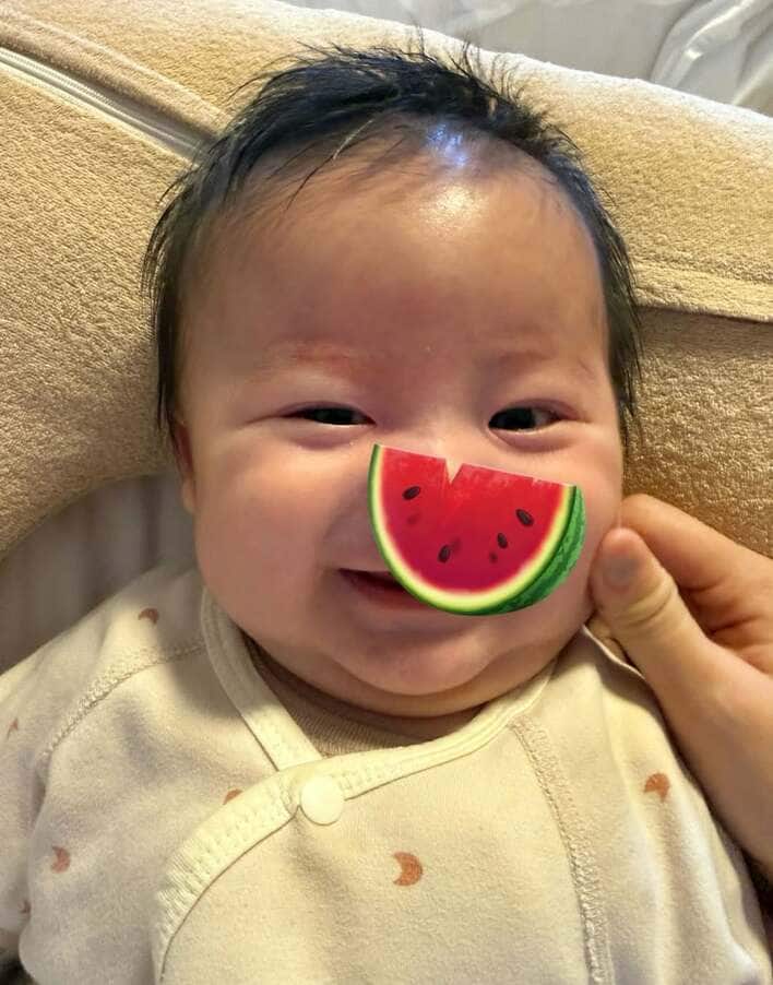 ビッグスマイルを浮かべるお兄ちゃんの姿を公開。ぱっちりとしたお目々に、ぷにっと膨らんだほっぺたがなんともかわいらしく、つられて笑顔になってしまいますね。中川さんは、「お兄ちゃんがニコーって 無償の愛とは大人からじゃなく子供がくれるものなんだなぁと感じます」としみじみ。