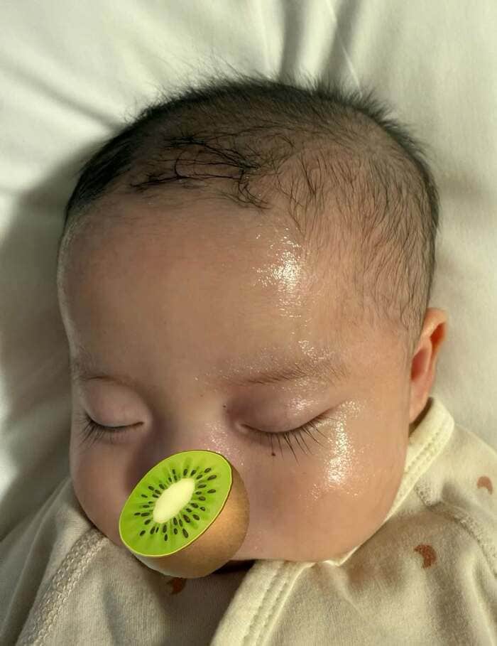 写真の最後には、長いまつげが際立つ弟くんの寝顔ショットを添えています。