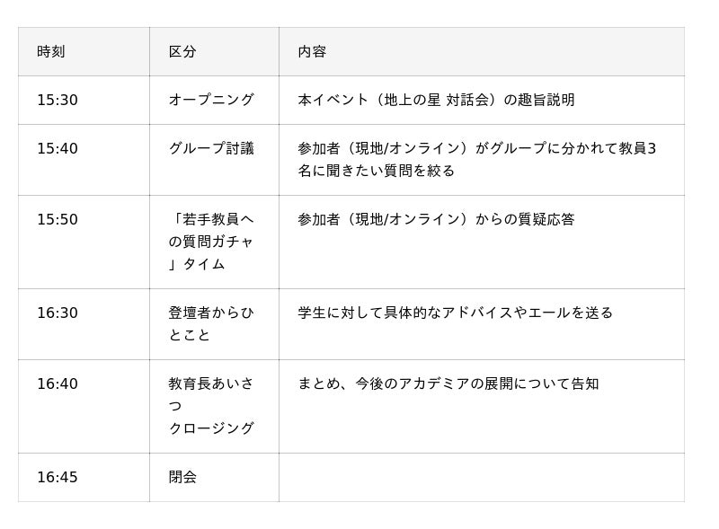 現場で活躍している教員を“地上の星”とたとえ、その教員たちと教員志望の学生が語り合う場です。先生の働き方や魅力など、学生の質問に教員が答えます。