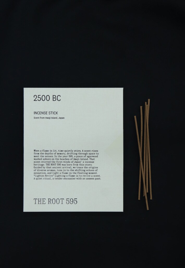 THE ROOT 595は、595年に淡路島へ沈香が漂着したという日本書紀の記述を起点に、日本の香文化と、世界の香料史の源流を横断的に結び直すプロジェクトです。焚く薫りという所作を軸に、香りの起源と現代の暮らしを再解釈し、横断的に編み直すことを目指しています。