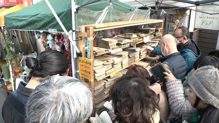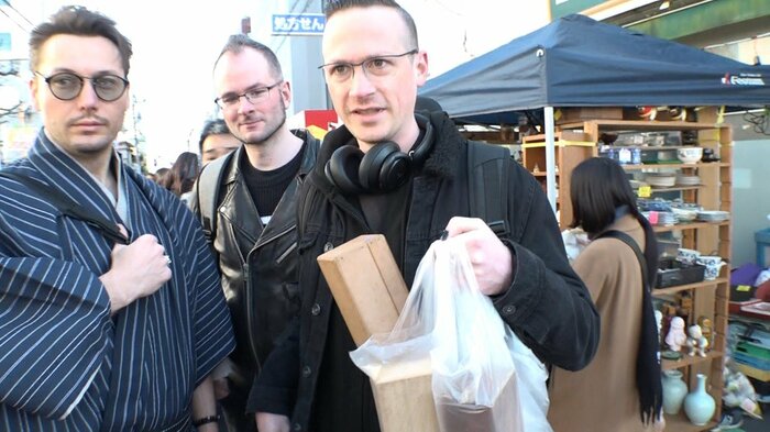 掘り出し物も多い「ボロ市」のウワサは、外国人観光客にも伝わっているようで、ドイツ人の男性は、仏事用の掛け軸3点をまとめて5000円で購入したといいます。