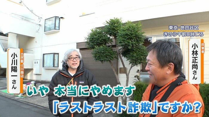 親交のある同業者の小林さんが「ラストラスト詐欺ですか?」と笑いながら話しかけてきたのを、「いやいや、本当にやめます」とはにかみながら返す小川さん。