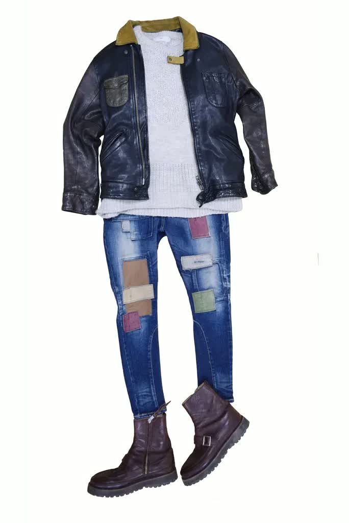 若宮は、獅子雄とは正反対の シルエットを出したいと思いそこに可愛さとインテリ感を混在させた、ショート丈のアウターを基本としたコーディネートを組みました。