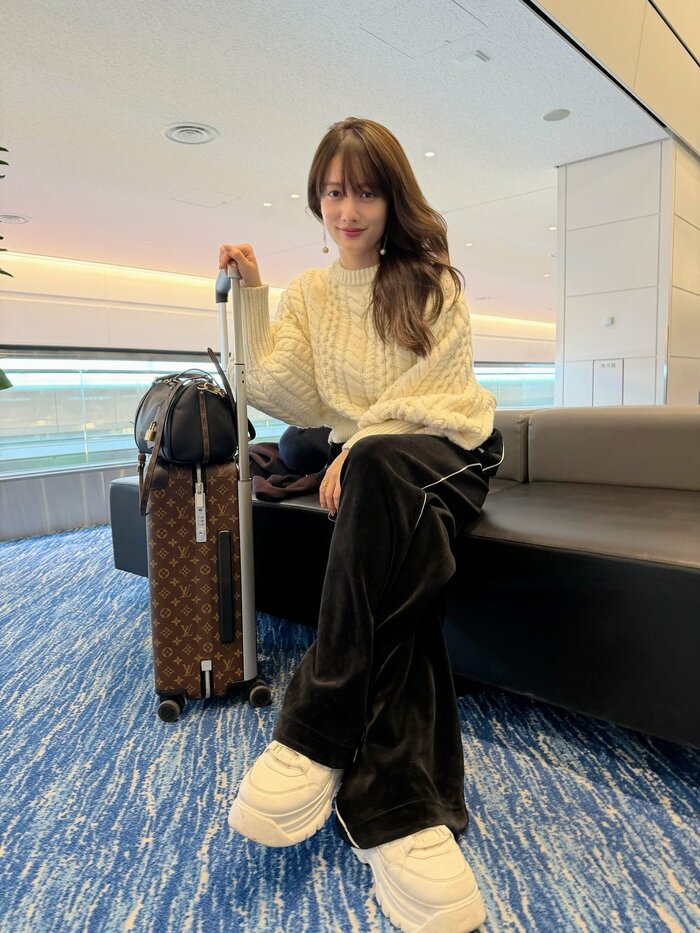 モデルの谷まりあさんが、2025年12月15日に自身のインスタグラムを更新し、白ニット姿での空港ショットを公開しました。