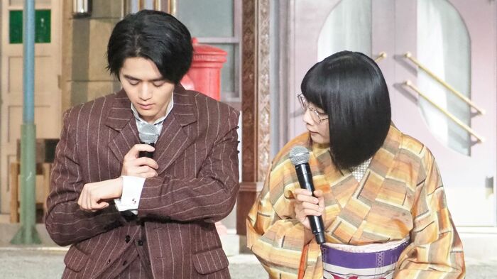 そして、松本さんも衣装について「昭和初期のお着物を着させていただいて、鹿乃子のトレードマークのメガネも鼻あてがないんです。耳にかける部分の形も変わっていて、ここもこだわっているポイントです」と耳元をのぞかせながら紹介しました。