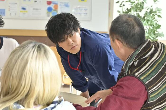 病室の中をのぞくと、入院患者の清宮松雄(でんでん)が他の患者たちに囲まれていた。