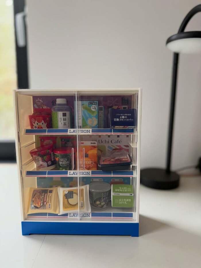 商品棚には、本物そっくりなジュースやアイス、飲み物、からあげクンなどがずらりと並んでいます。思わず手に取りたくなるかわいさです。