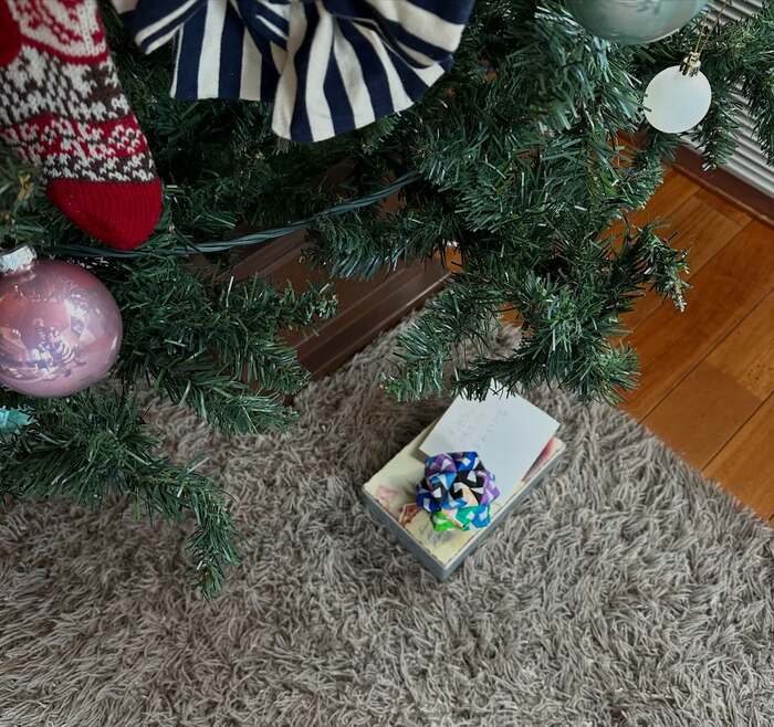 そんなつるのさんは今回の投稿で「うちは毎年クリスマスツリーの下の缶のなかにサンタへの手紙を入れておくシステム。」とつづり、自宅でのショットを公開。