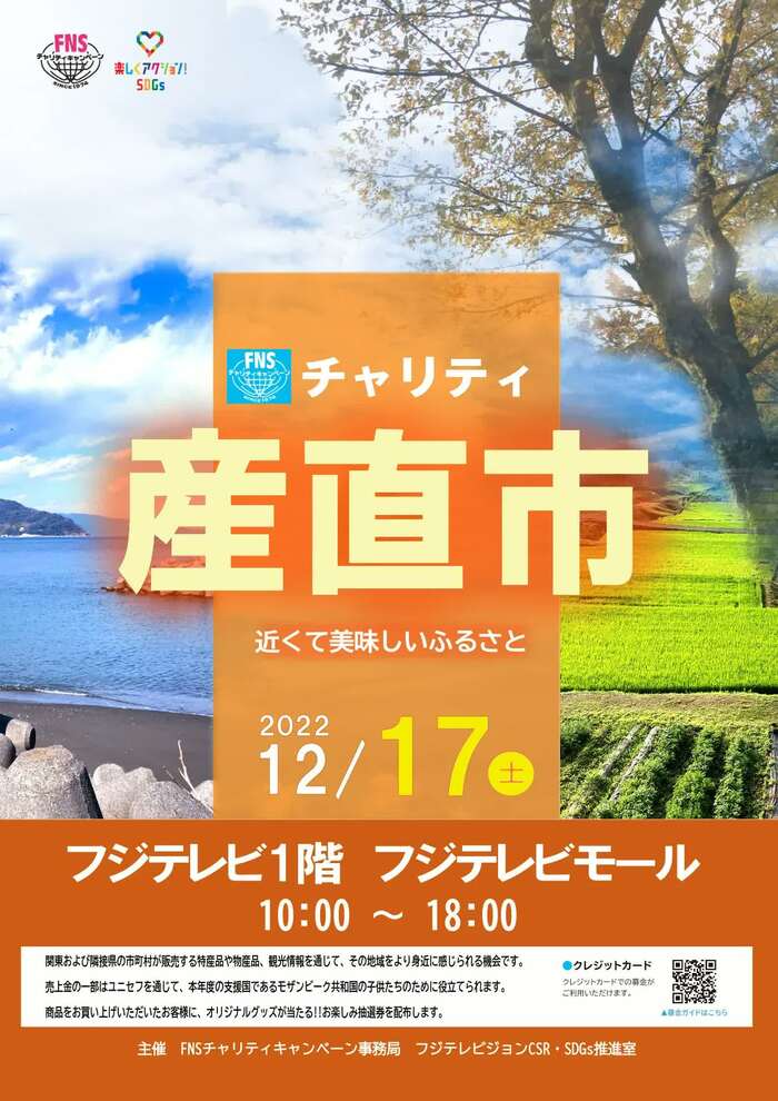 12月17日(土)、フジテレビ社屋1F「フジテレビモール」にて、「FNSチャリティ産直市」(入場料:無料)が開催されます。