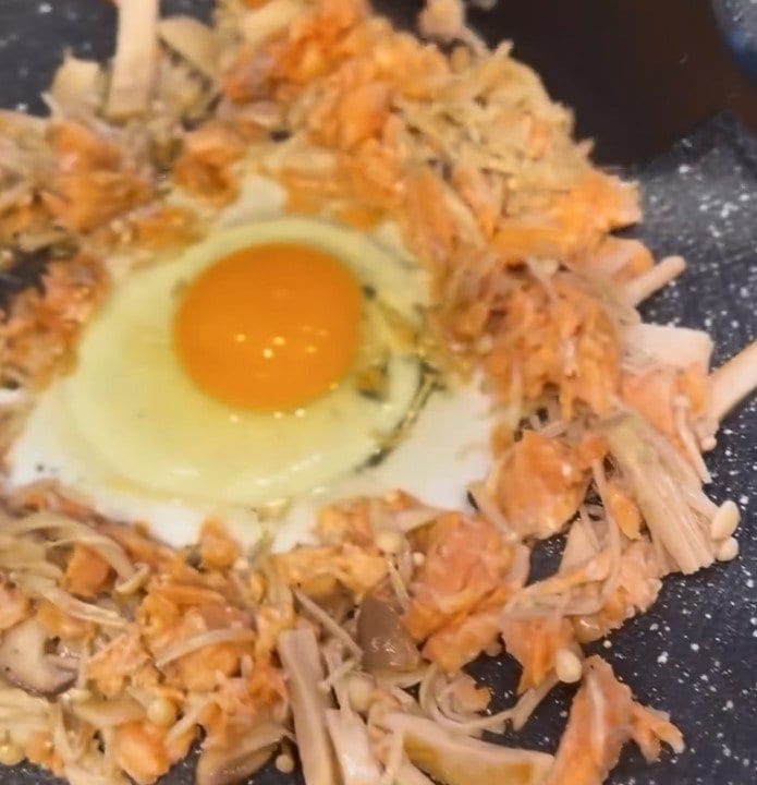 そんな西山さんは、今回の投稿で「鮭を焼いてほぐしておくと、色んなアレンジに使えて楽ちんな件」とつづり、鮭をふんだんに使った食卓を披露しました。