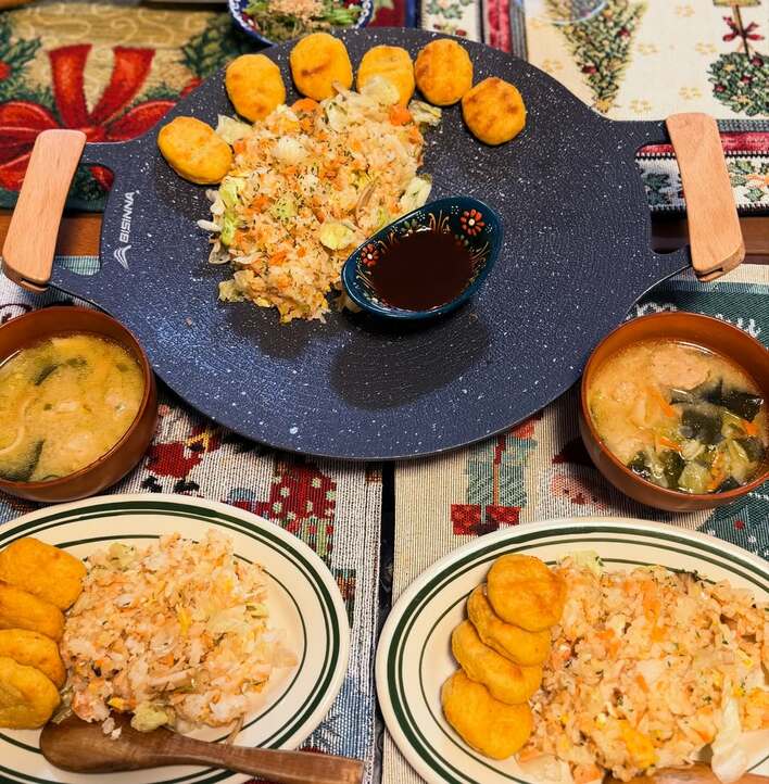「焼きほぐし初手は白米と皮を巻いて 初夜は炒飯で」と、この日のメインは炒飯のようです。