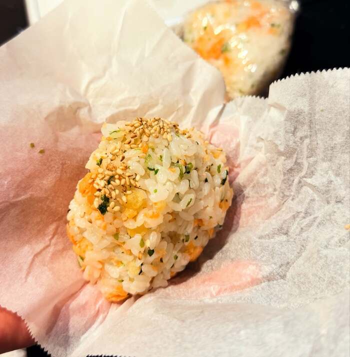 握ったおにぎりの上には、ごまもまぶされていて、とってもおいしそう!