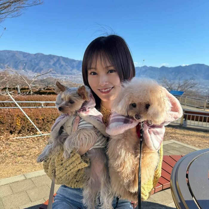 別の写真では、山本さんが両腕に2匹の愛犬を抱いて、満面の笑みを見せる3ショットも!