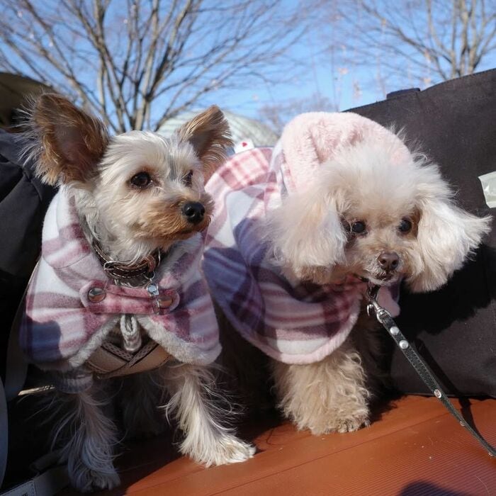 山本さんは、この愛犬の服について「#りおんとねおんのお揃いポンチョは #姉の手作り #可愛すぎる」と、姉手作りのポンチョだと明かしていました。