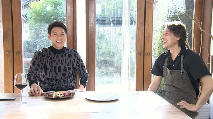 シェフの泉康裕さんに「くるみと長芋が入っている」と紹介された一品を味わうと、「あまり突進してこないんですよ、ちょうど自分の舌で溶けている感覚」と語り、「1番やさしい感じが香りにくる」と絶賛します。